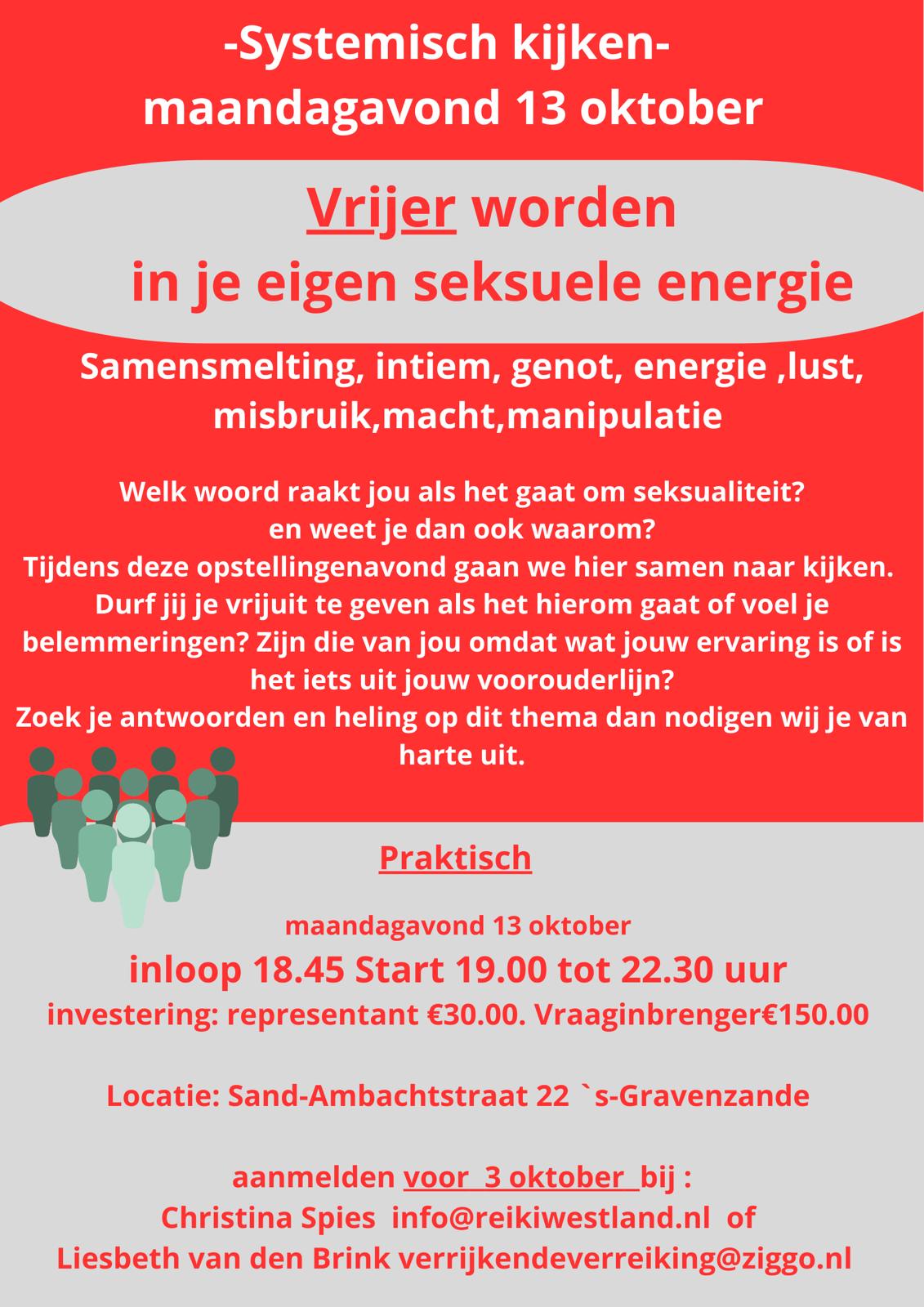 Thema: | Vrijer worden in je seksuele energie - samensmelting, intiem, genot, energie of lust, misbruik, macht, manipulatie - / voor flyer klik hier |